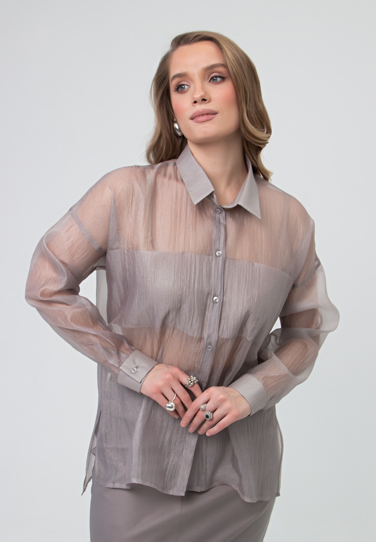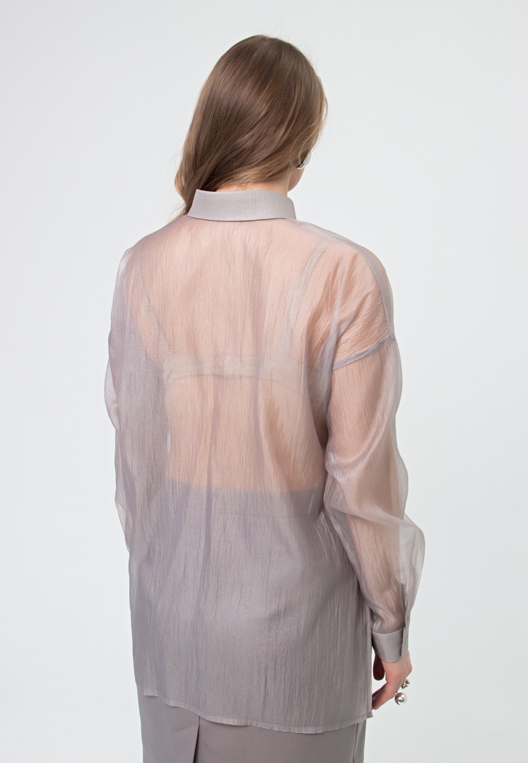 Описание:  Блуза-рубашка из тонкой органзы креш. На груди на двойной складке выполнены карманы.
