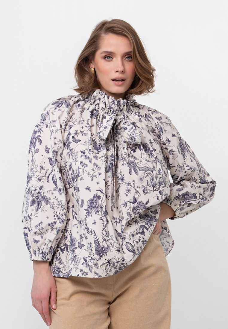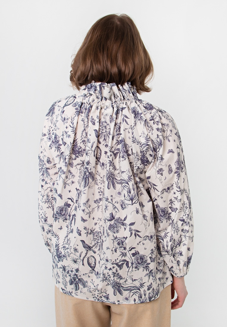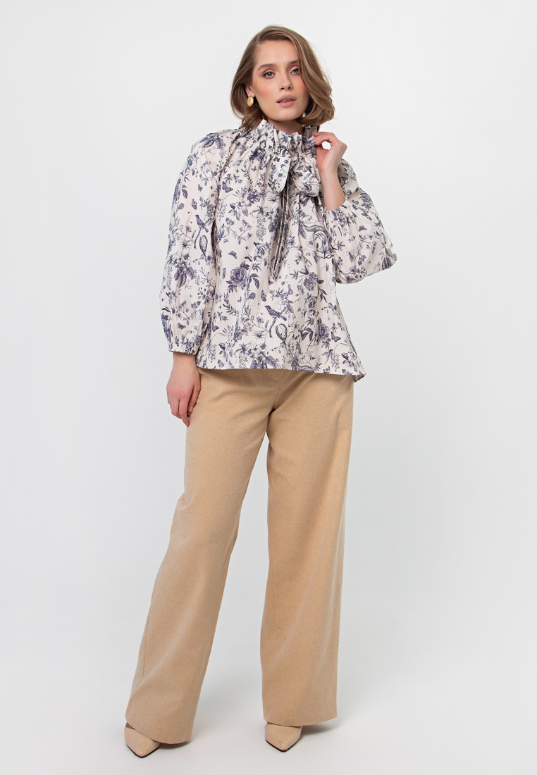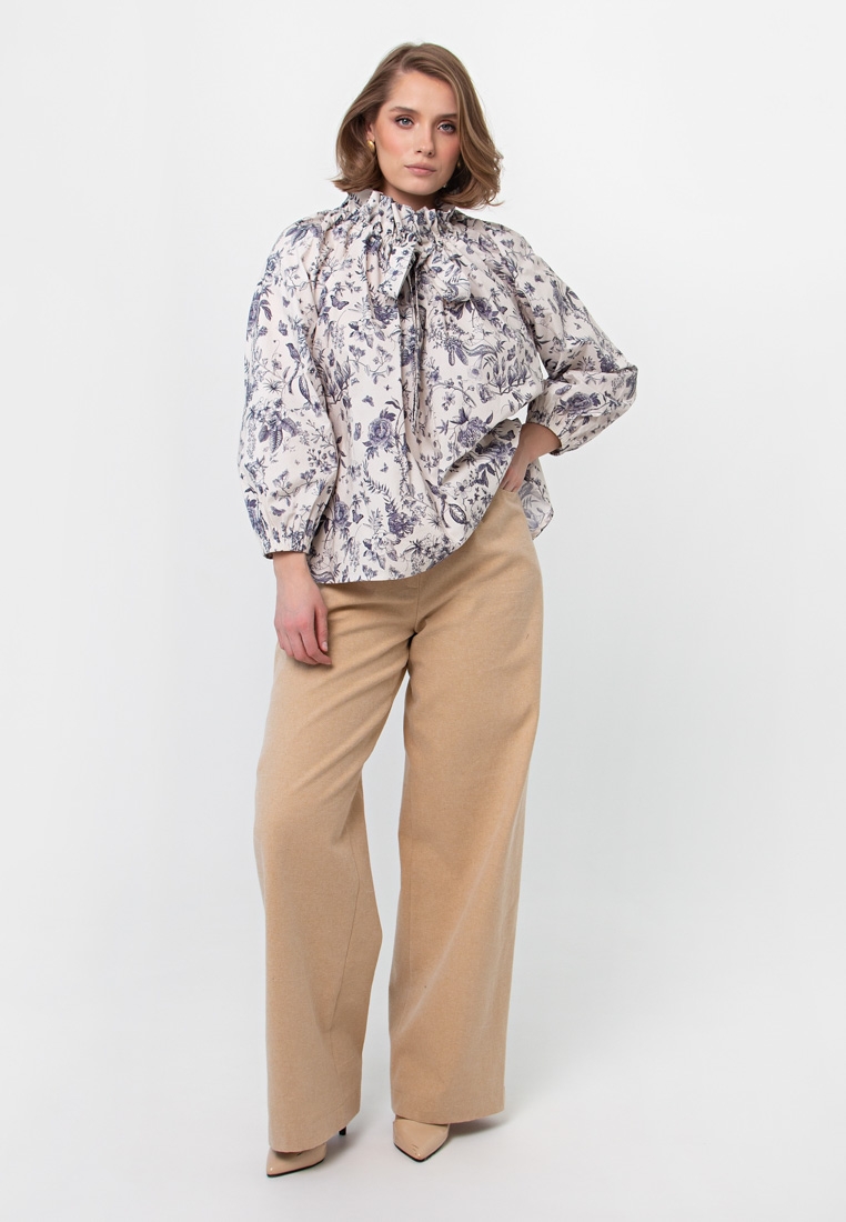 Описание: Ткань блузы не тонкая, не толстая – средней плотности, слегка бумажный хлопок. Блуза без подклада. Рукав реглан. Кулиска по горловинке регулируется (можно расслабить или затянуть), широкие завязки вставлены в горловинку. Свободный силуэт, садится плюс/минус размер.
