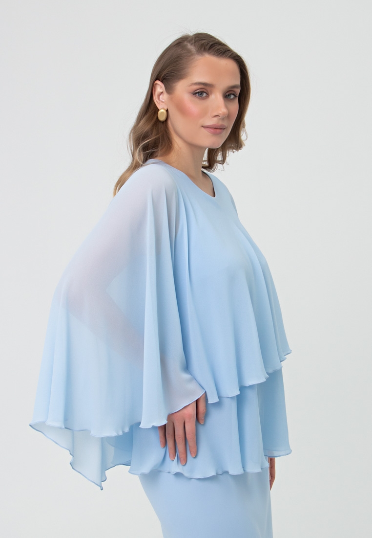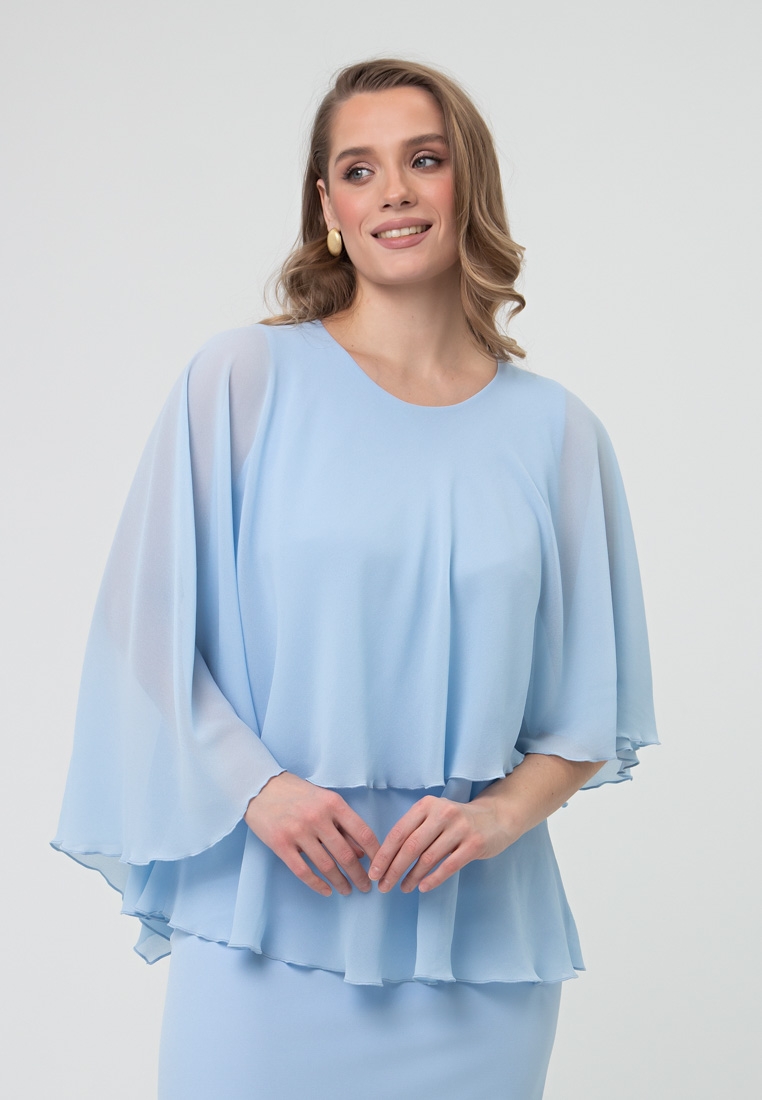 Описание: Шифон в два слоя: на внутреннюю маечку из качественного турецкого трикотажа (96 вискоза, 4 эластан) по горловине сперва пришита разведённая маечка из шифона; а верхняя шифоновая часть в виде накидки-солнца, которая также зафиксированная на горловине, полностью без швов, чтобы не было сборок. Верхняя часть с декоративной асимметрией.