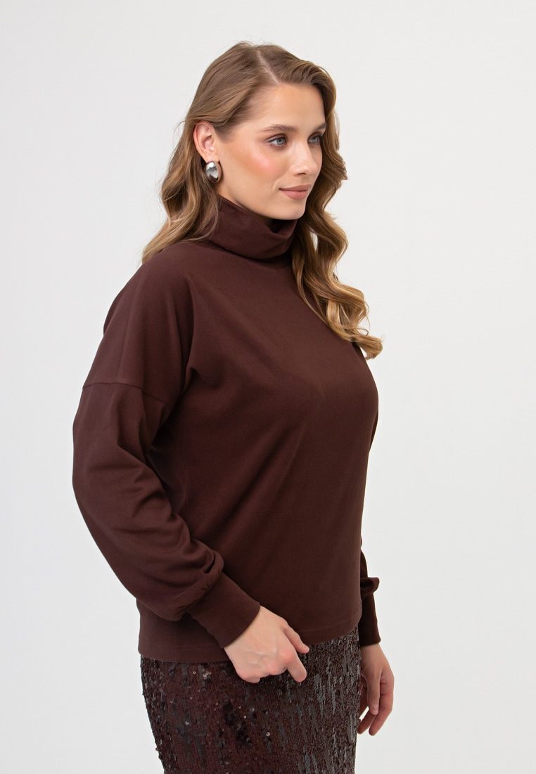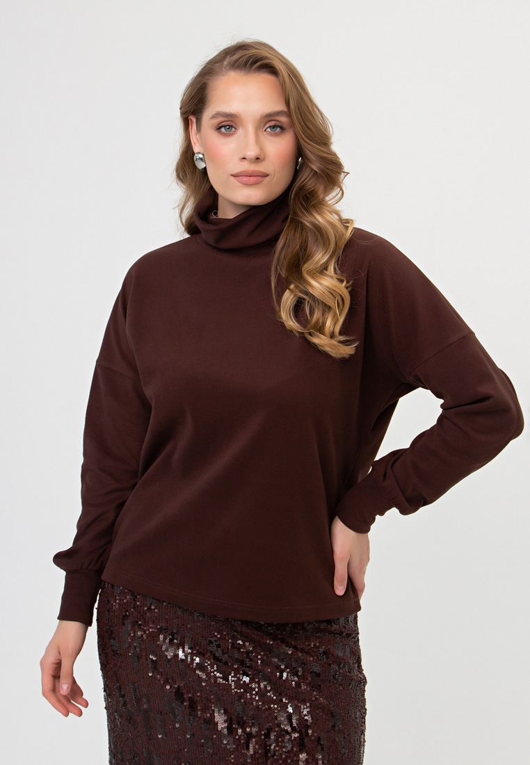 Описание: Блуза свободного силуэта. Ткань приятный к телу мягкий флис, не закатывается, не выгорает, годами не снашивается. Высокий ворот. Длинный рукав с манжетом, длина по спинке 60 см.