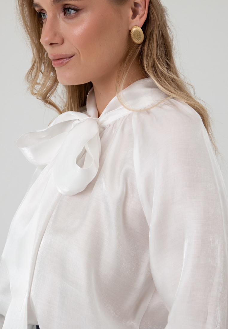 В жизни блуза очень хороша, прекрасна. Воротник-бант, его можно завязать бантом (как на фото), можно галстуком. Без подклада.