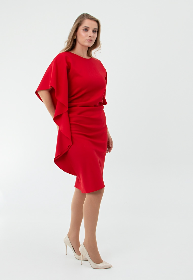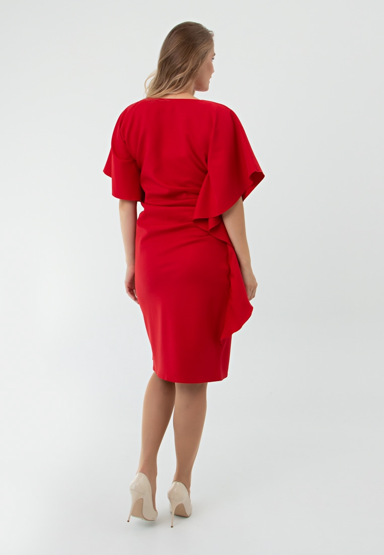 Описание: Платье с односторонним воланом и драпировкой, успешно позволяющей облекающему платью моделировать неровности фигуры. Без застёжек. Длина по спинке около 106 см.