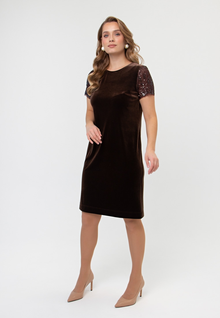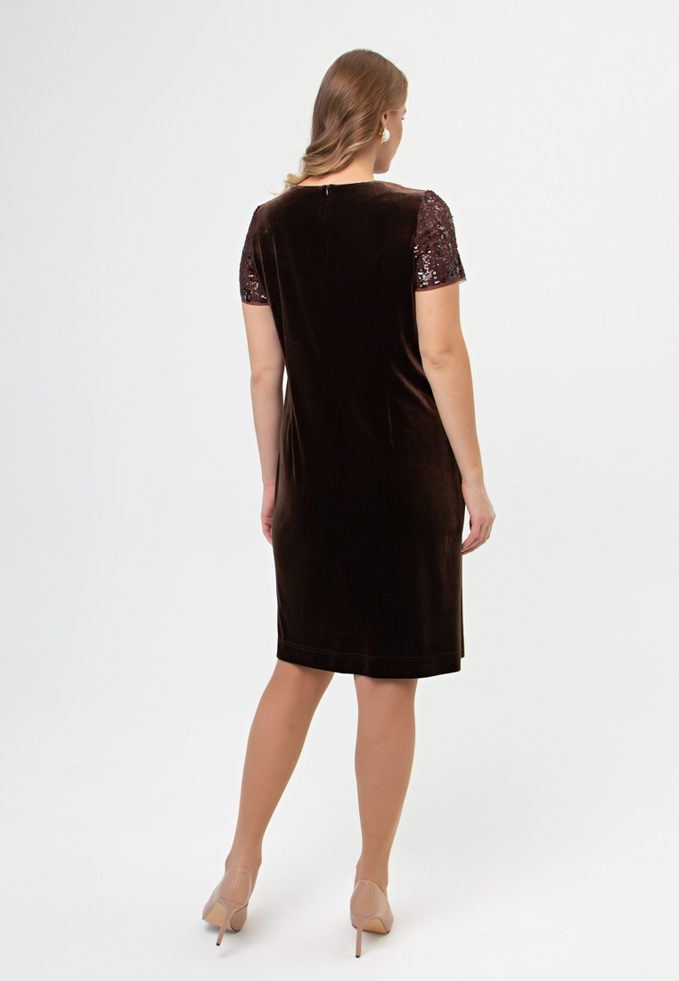 Описание:  Платье А-силуэта, по спинке застёжка на молнию, рукав пайетки на сетке.