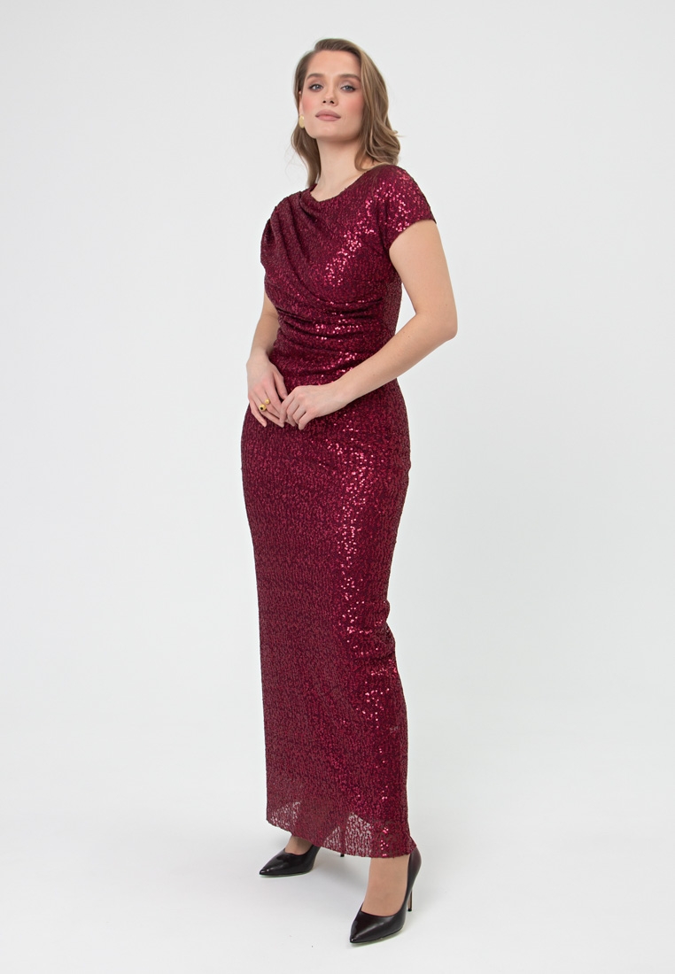 Описание:  Платье с лёгкой драпировкой по переду, что удачно и деликатно моделирует фигуру. В качестве подклада трикотаж. Спинка до талии без подклада, по спинке молния. Длина макси.