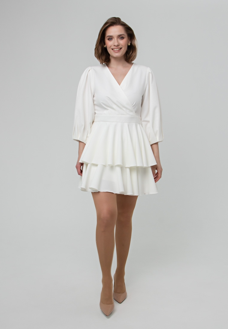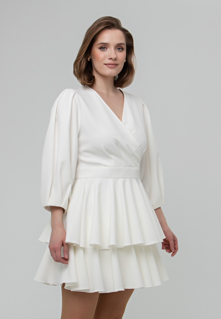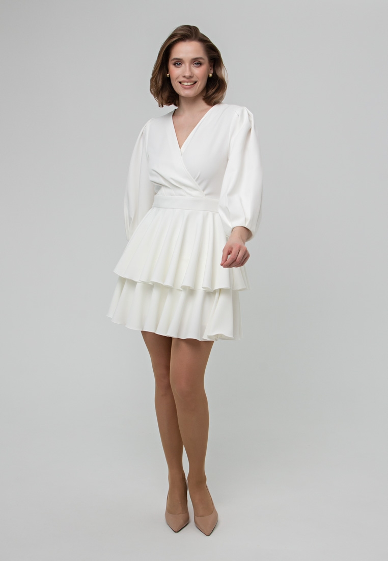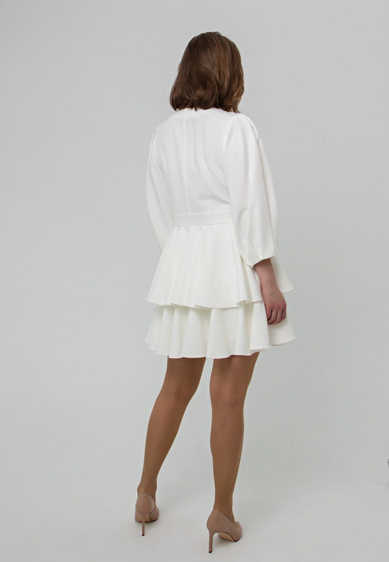 Описание: Коктейльное платье, застёжка сбоку на молнию. Каждая юбочка - это двойное солнце; юбки-воланы располагаются на внутренней прямой юбке, предохраняющей от казусов при кружении.