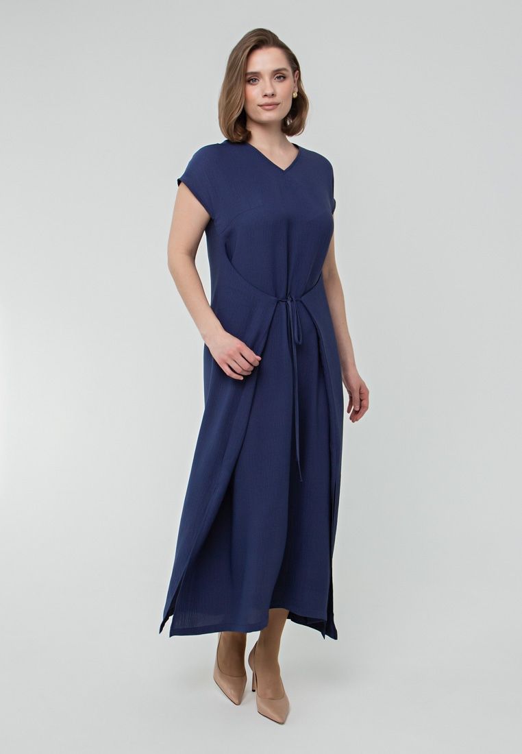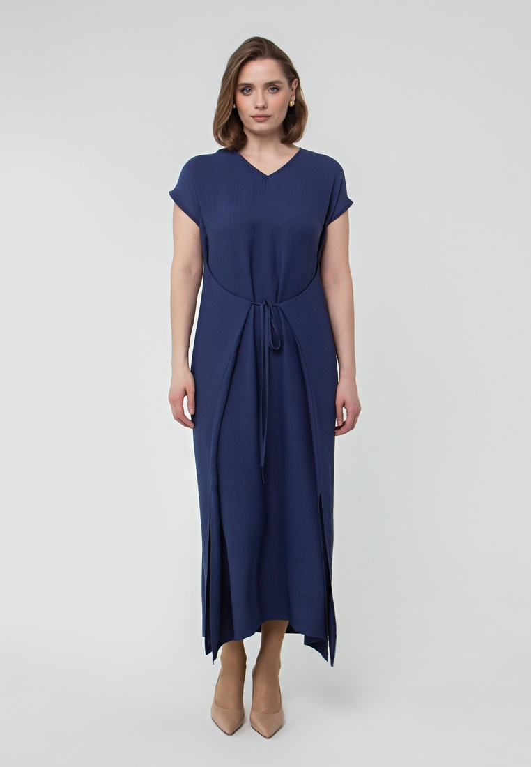 Описание:  Платье свободного силуэта, широкое, завязывается произвольно по переду на вшитые во швы платья завязки.