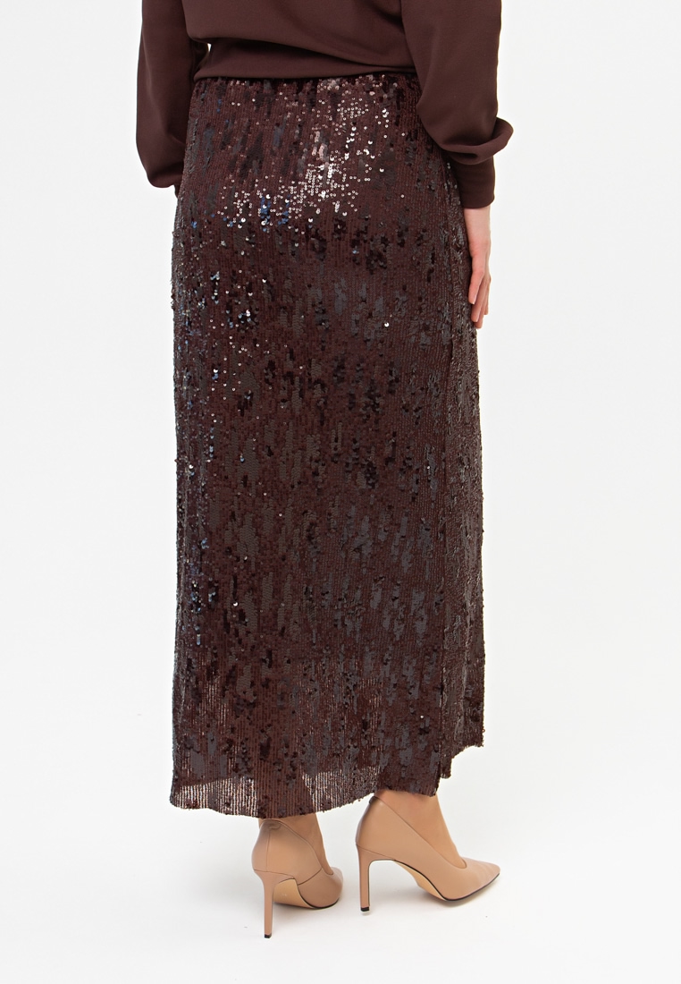 Описание: Юбка с лёгким А-силуэтом: для удобства шага и красоты фалдения. Пайетка двух разных диаметров, двусторонняя (с одной стороны матовая, с другой блестящая). Юбка на подкладе из вискозного трикотажа. Длина 100 см.