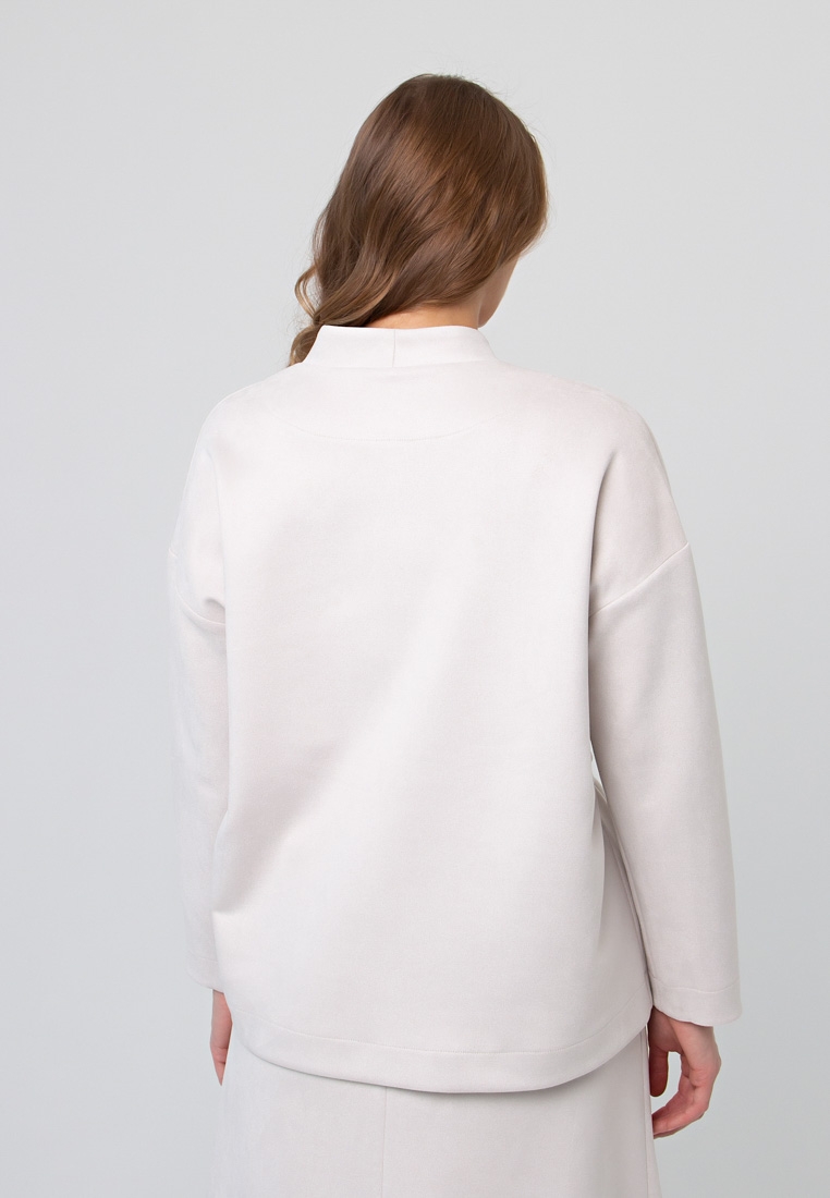 Описание:  Жакет свободного силуэта, по спинке цельнокроенная стойка. Без подклада, застёжка на кнопку. Пояс продевается в две петли с боков жакета.