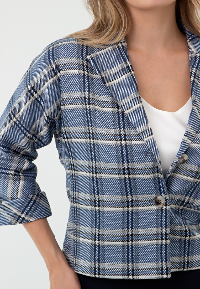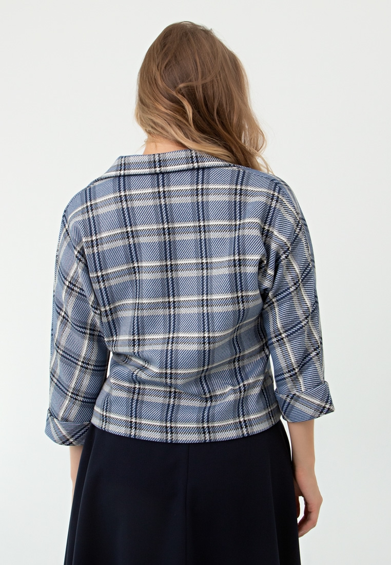 Описание:  Короткий жакет, на подкладе из вискозного жаккарда. Рукав мышь, застёжка на пуговицы.